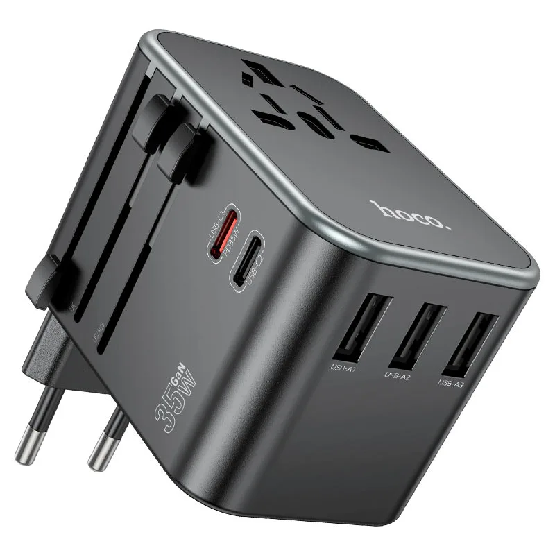 Output: 1 × AC socket – 1840W at AC230V, 880W at AC110V. 1 × USB-A 1 – 5V / 2.4A. 1 × USB-A 2 – 5V / 2.4A. 1 × USB-A 3 – 5V / 2.4A. 1 × Type-C 1 – 5V / 3A, 9V / 3A, 12V / 2.91A, 15V / 2.33A, 20V / 1.75A – 35W max. PPS: 3.3-16V / 2.2A. 1 × Type-C 2 – 5V / 2.4A.